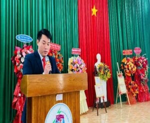 Thầy Hoàng Khắc Thưởng -Bí thư Chi bộ, Hiệu Trưởng trường THPT Chu Văn An -Hiệp Thạnh phát biểu chúc mừng