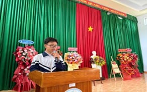 Em Hồ Đức Minh lớp 11A4 đại diện học sinh toàn trường phát biểu tri ân Thầy Cô